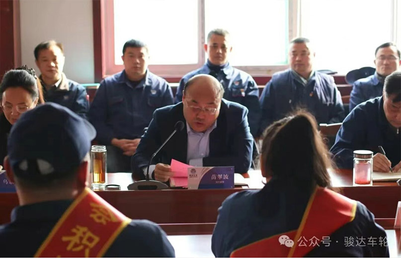 苗总指出2026年工作总体方向紧扣国家“十五五”规划机遇,以智能化、绿色化、融合化为主线,推动高质量发展;践行企业精神与经营理念,落实质量方针。重点做好以下五方面工作:第一、坚持创新引领,筑牢技术堡垒;第二、深耕精益生产,锻造品质标杆;第三、拓展市场深耕国内,开拓海外,多渠道强化品牌建设;第四、厚植人才沃土,凝聚发展合力;第五、聚焦车轮制造核心业务,推进业财融合项目落地实施。让我们以时不我待的紧迫感、舍我其谁的责任感,携手并肩、奋楫扬帆,共同书写骏达机械更加辉煌的明天。
